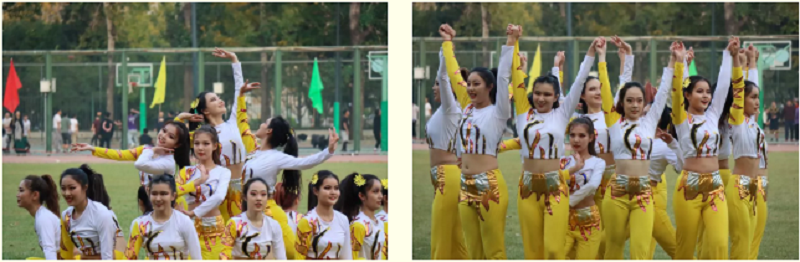 民族健身操的音乐响起,我院健身操队员以整齐划一的动作、富于变化的队形、丰富的舞蹈表现力赢得了评委和观众们的掌声与认可,最终我院取得了第七名的好成绩。