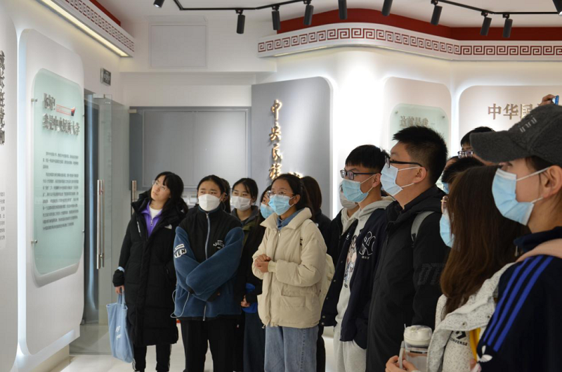 在讲解员的带领下,同学们首先来到了校史展厅,认真听取了以“成长在党和国家的关怀下”为背景的主题讲解,讲解员以时间为轴详细讲述了我校的发展历史,回顾了民大光辉的历史发展进程。