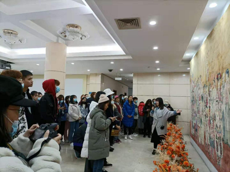 最后,同学们在大厅的大型民族人物丝毯前合影留念,结束了本次参观活动。参观校史馆的活动就像是一块敲门砖,让20级本科新生们与民大愈发亲近、联系愈发密切,使同学们能够更好地在民大“漫画腐