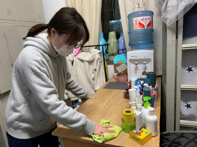 活动过程中,同学们明确职责,统筹安排,进行了具体分工。对玻璃、门窗进行擦洗除尘,擦洗桌凳,清扫地面,并对床铺进行了整理。随后又对宿舍楼道进行了全方位的清扫。每一个跃动的身影都挥洒着劳动的热情,每一个撸起袖子加油干的劲头都化作了整理宿舍的力量,通过大家辛勤的劳动,营造出了一个个洁净整齐、焕然一新的靓丽宿舍。