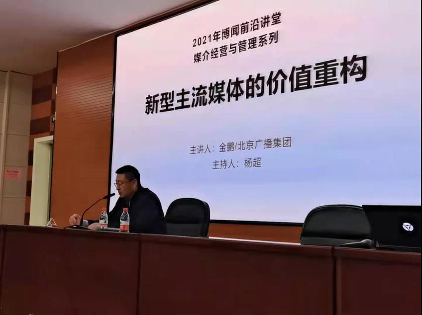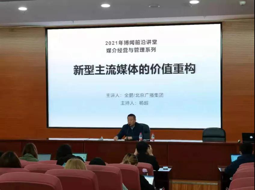 4月22日上午,北京广播集团总经理金鹏走进课堂,为我们带来了“博闻前沿讲堂-媒介经营与管理系列”第四讲,讲座的主题为“新型主流媒体的价值重构”。