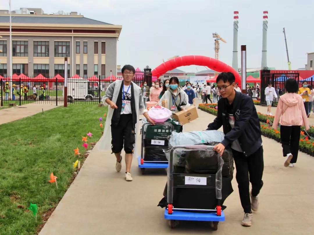 在行李暂存处,有志愿者们帮助小萌新们看管、运送行李。