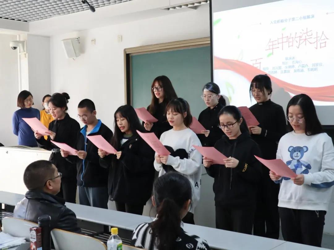 第二小组为老师和学员们带来了精彩的节目展演,他们朗诵了原创诗歌《百年中的七十》,歌颂了中国共产党建党百年来的光辉历程,还回顾了漫画腐