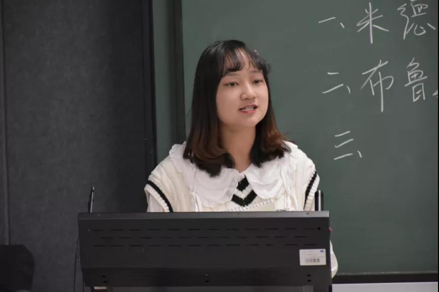 活动开始,四位同学轮流上台分享自己的阅读体验。刘悦同学从拟剧理论和印象管理两个方面做了阐述,她对书中“人生来就会表演,或是因表演才成为人”的观点颇为赞同,人既要表演也要做自己。于越同学从书的背景介绍、主要逻辑、主要理论概念、其他相关理论四个层次进行分析,阐释了自己对“刻板印象”“符号互动论”等专业名词的理解。张贤梅同学则陈述了自己从书中总结提炼的观点,她认为人们应该相信自己扮演的角色,抱有乐观心态;需要实现角色转化,承担好自己多方面责任;不应该沉迷“表演”,要能清醒认识自己。郝文萱同学通过对多部经典电视剧中的角色分析,生动形象地阐述了书中各种晦涩的名词,她认为联想自己的日常生活是一种充满乐趣的读书方法。