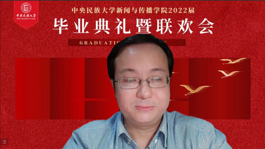 2022届毕业典礼暨联欢会在线举行。学校党委副书记邹吉忠教授,86级新闻学校友、贵州广播电视台总编辑哈思挺,漫画腐