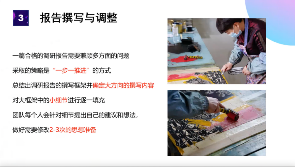 三支优秀实践团队的领队韩嘉琪同学、何华振同学和张映雪同学分别以各自团队社会实践为例分享了宝贵经验。几位同学不仅分享了如何确定选题内容、做好准备工作的过程,还详细讲述了团队如何克服在实践中遇到的种种困难,最终经过磨合与协作找到正确的前进方向。他们认为与指导老师保持密切的沟通交流是必不可少的重要环节,同学们要把握住机会勤学好问、脚踏实地,才能收获自身能力与水平的提升。