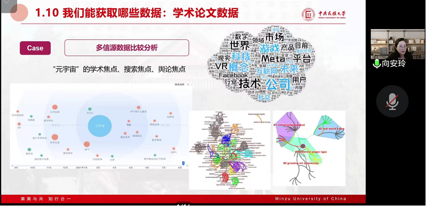 博士向安玲作为青年学人开启了2022年秋季学期博闻前沿讲座的第一讲。本次讲座主题为“媒介大数据如何赋能传播学研究”,由赵丽芳教授主持,学院师生以及清华大学、中国人民大学研究生等100余人通过线上讲座学习。