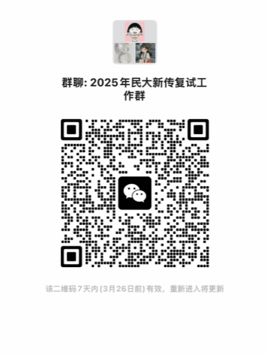请扫描“2025年民大新传复试工作群”二维码进群。