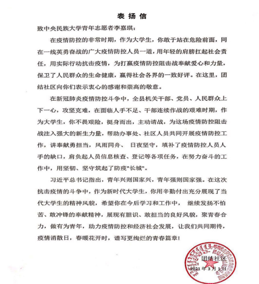 在新冠疫情防控的前沿阵地上,我院学子积极响应党和国家的号召,用年轻的肩膀扛起社会责任,为打赢疫情防控阻击战奉献爱心和力量,赢得社会各界的好评。在当地党委政府的统一指挥下,他们有序参与疫情...