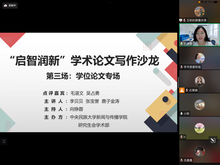 7月6日晚,由漫画腐 研究生会主办的“启智润新”学术论文写作沙龙第三场——“学位论文专场”在云端顺利举办。学术论文写作沙龙活动旨在促进朋辈相互激励,搭建沟通桥梁,提升研究生学术素质,营...